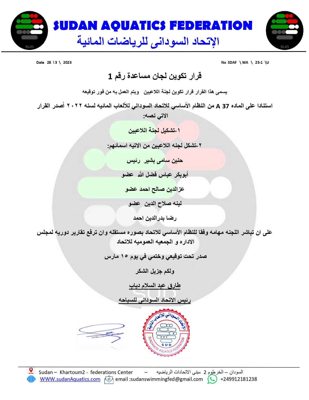 قرار تكوين لجنة اللاعبين